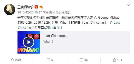 会缅怀George Michael去世;