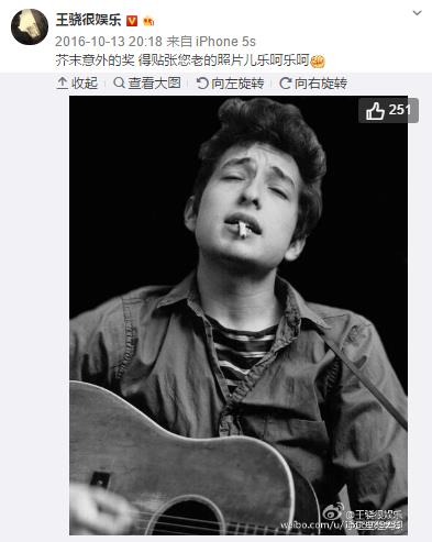 迪伦获诺贝尔奖也不忘表示庆祝;