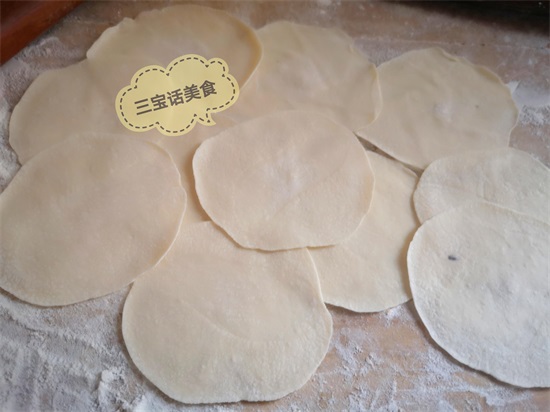 7. 用擀面杖擀成一个个的饺子皮;