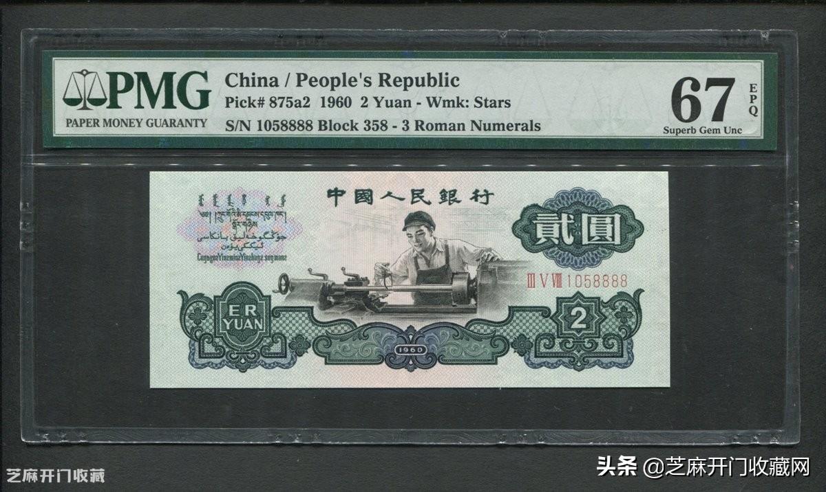 5:1960年第三版人民币贰圆一枚,五星水印,趣味号四同8888,PMG 67EPQ,估价: RMB 20000,成交价格: RMB 57500