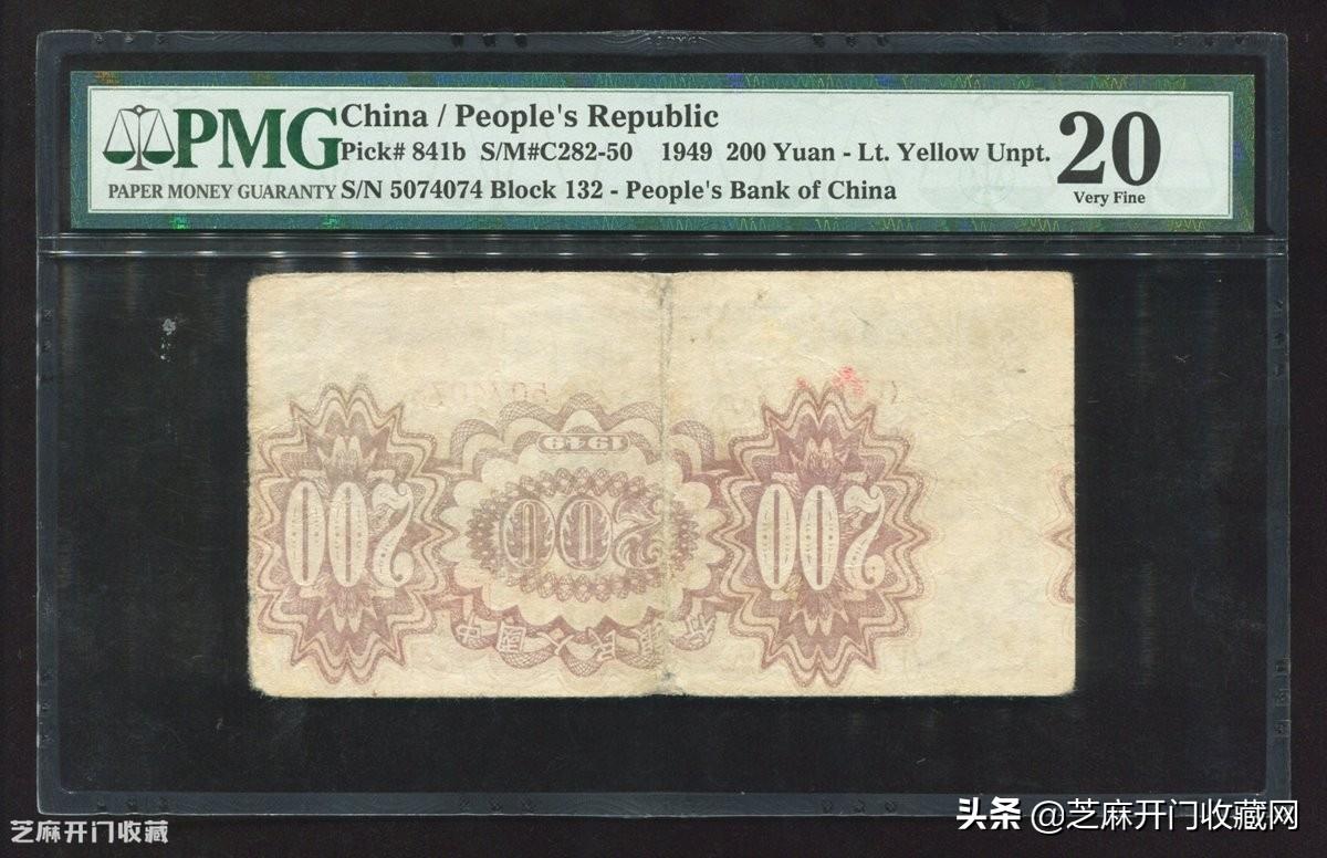 2:1949年第一版人民币贰佰圆颐和园一枚 ,背图移位 PMG20,估价: RMB 10000,成交价格: RMB 59800