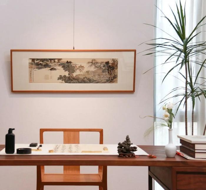 沈周爱“卧游”,将寻常景象和即时感受融入画作,在尺幅画卷中,体会山水林泉的深挚与乐趣。我们画完之后,也可以将作品托裱,悬挂家中,留念这段笔墨时光的同时,畅游在可居可游的山水世界。心中有景,随时出发,轻盈地身临其间。