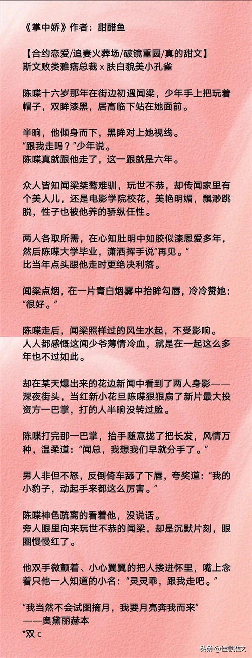 今天给大家推荐的是破镜重圆小说,镜子碎了,还能补得完好如初吗?不可能了,但是也再不可能会这样爱一个人了,所以我们重新开始吧!