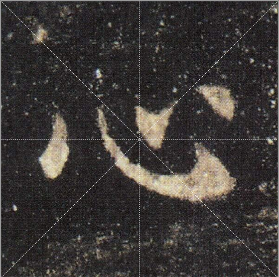 最后把欧阳询《九成宫》中的两个碑帖放大的例字,以及碑帖给大家欣赏做书写参考。