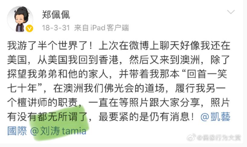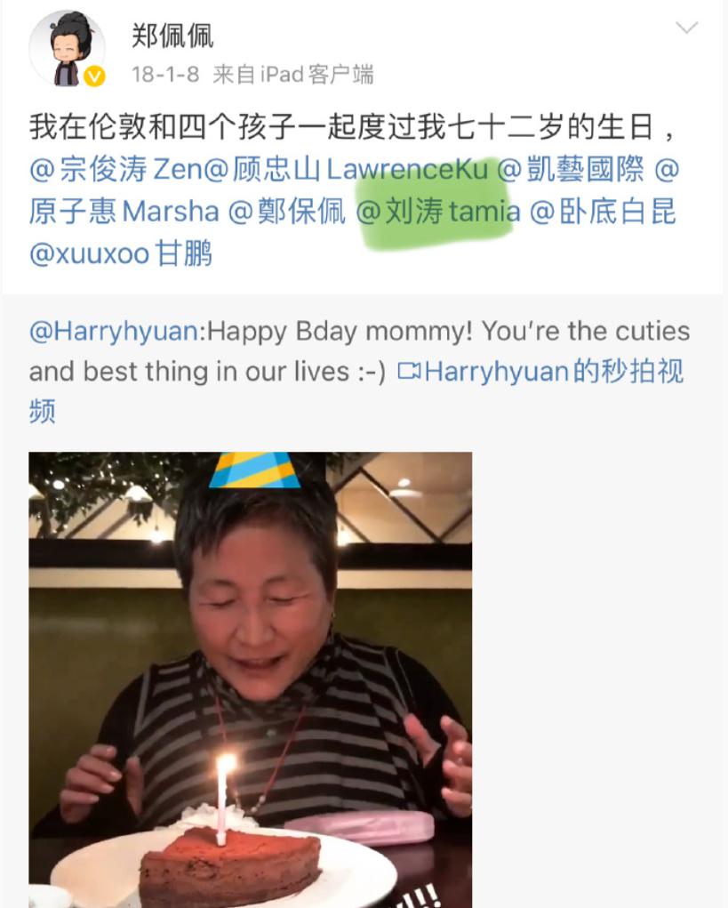 话题 # 郑佩佩每条微博都艾特刘涛 #