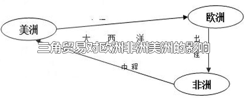 三角贸易过程:从欧洲启航——非洲(取得黑奴)——美洲(出售黑奴)——回到欧洲(发展资本主义)。