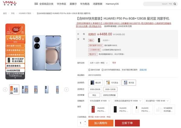 【手机中国新闻】1月30日,手机中国从华为商城了解到,目前华为P50 Pro限时直降1000元,8GB+128GB版本价格低至4488元,8GB+256GB版本价格为4988元,同时赠送价值199元的保护壳,这也是自2025年华为P50 Pro发布以来最低价格。此次P50 Pro的官方降价,似乎也预示着P60系列即将到来。