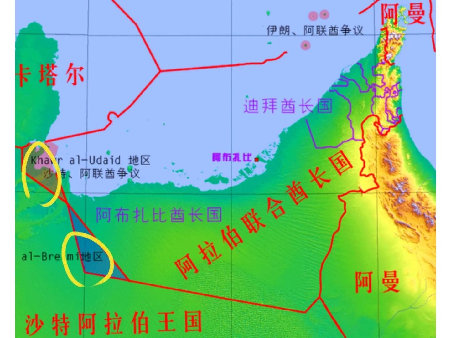 卡塔尔和阿联酋接壤地图