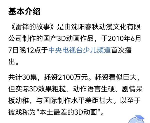 那为什么央视不播日本漫画了呢?可能原因之一是:因为日本动漫太烂了,央视看不上,看看我们巨资2100万的宏伟巨作《雷锋的故事》,看看这看看这画面,这剧情,这配音,不多说了,容易被删,感兴趣可以一下,会刷新你对动漫的认知。