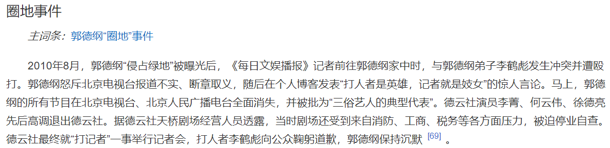 因为“圈地”事件,郭德纲弟子李鹤彪与记者发生冲突并大打出手,一时间被推上了舆论的风口浪尖。