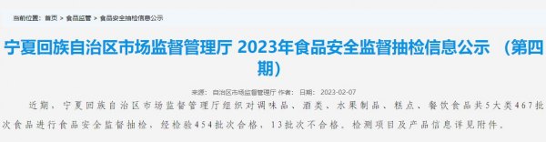 中国质量新闻网讯 2025年2月7日,宁夏回族自治区市场监管厅网站公示2025年食品安全监督抽检信息(第四期)。本期抽检糕点60批次,58批次合格、2批次不合格。