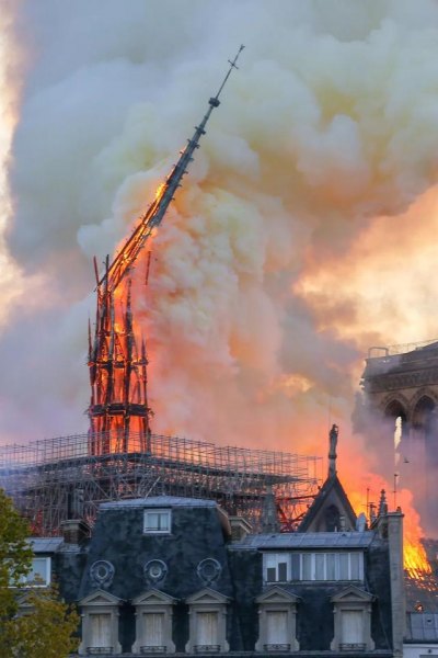 △巴黎圣母院塔尖坍塌瞬间。图/东方IC