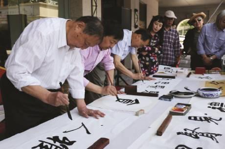 以盛典搭桥,文化同样在天马相城融合呈现。在天马文化街,10多位烟台民间艺人设置展位,展示自己的书画、面塑、剪纸、国画等作品,吸引了诸多嘉宾流连忘返。