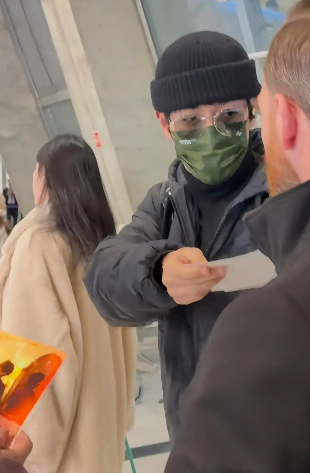同日凌晨2点多,有多位网友也遇到了他。其中一位网友表示,跟他同班飞机,第一次近看明星心情很是激动,找他签名但找不到可以签名的东西,他就对着网友笑了笑。
