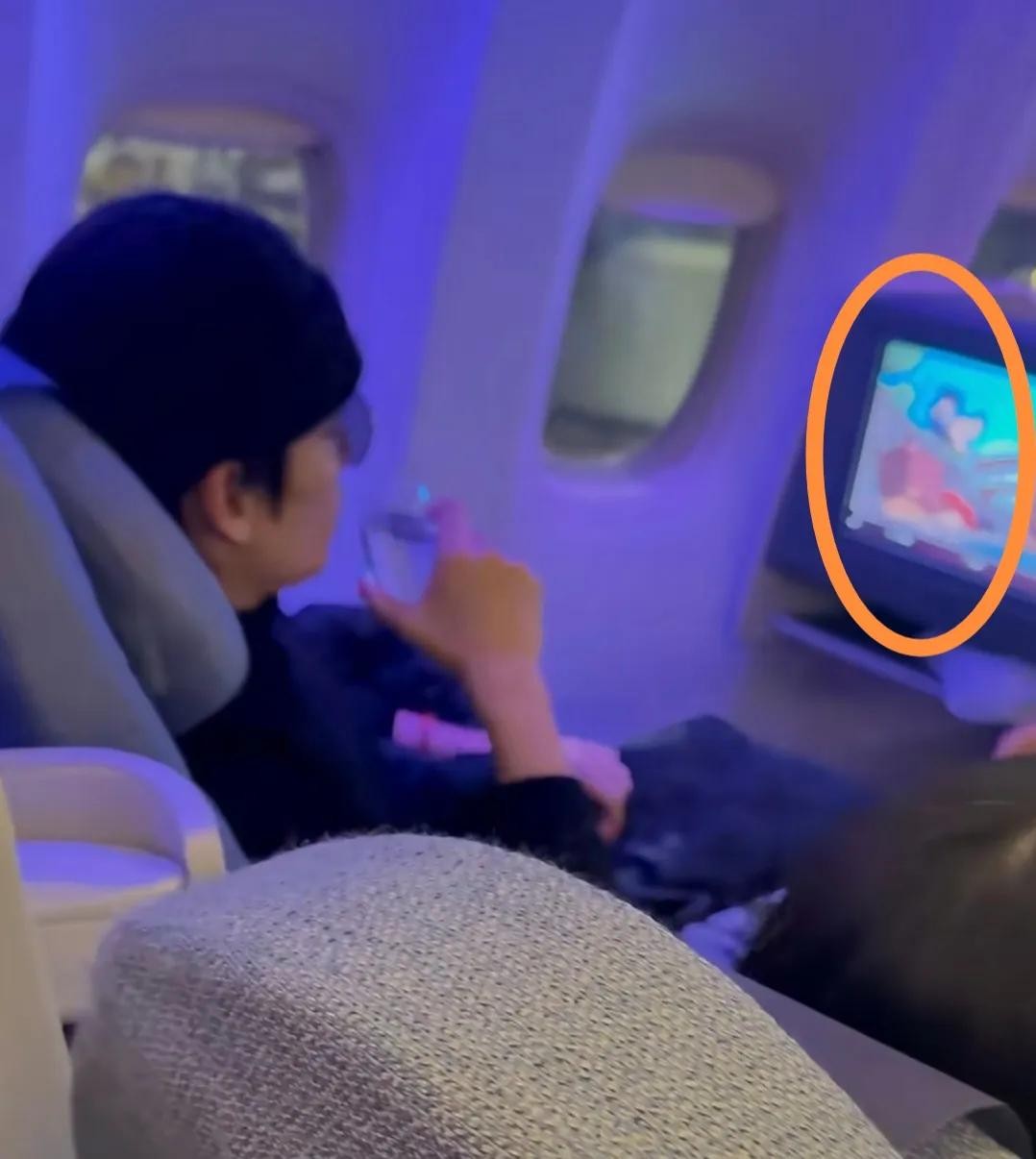 该网友还分享了一段视频。视频显示,上了飞机的他脱掉了外套,端起一杯水喝了起来。这个角度看,他的颜值真的是无可挑剔。