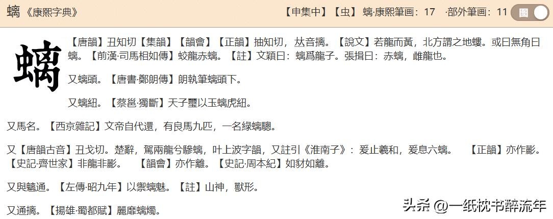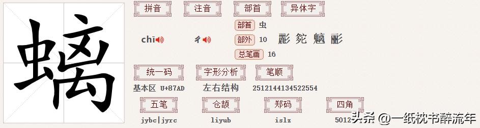 螭的同音字:chī 吃 媸 痴