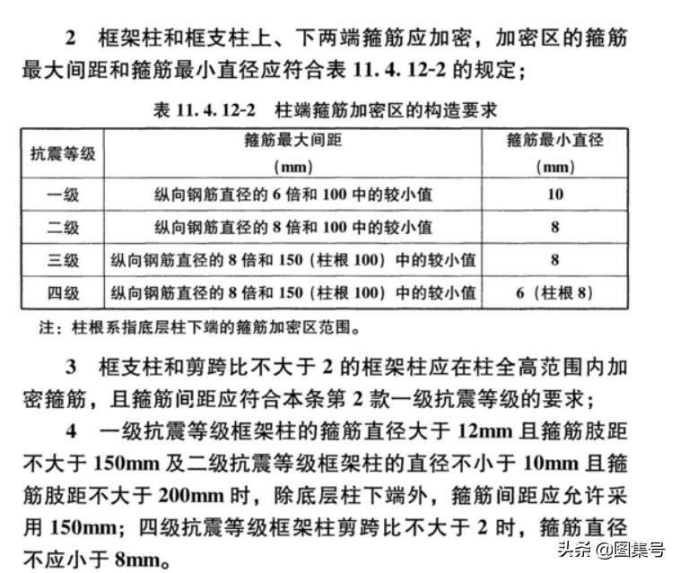 《建筑抗震设计规范》(GB50010-2016)对桩基础、框架梁和框架柱、框支柱的部分位置箍筋最小配筋也做了明确要求。