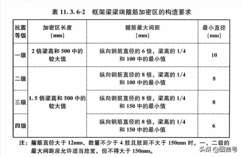 梁端箍筋配置最大间距和最小直径