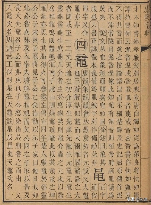 《康熙字典》中并未收录“鼋”字头,但提供了对“黿”字的解释,而“鼋”与“黿”在古代是相通的,可视为同一字的异体。