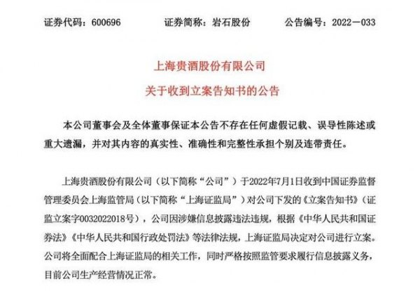 近日,岩石股份(600696.SH)发布公告称,公司涉嫌信披违法违规被证监局立案。
