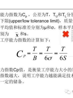 Cp适用于统计稳定过程,是过程在受控状态下的实际cpk加工能力过程,不考虑过程的偏移,是过程固有变差(仅能力由于普通原因产生的变差)的6σ范围。