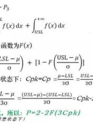 ②:合格率=1-P=2F(3Cpk)-1。