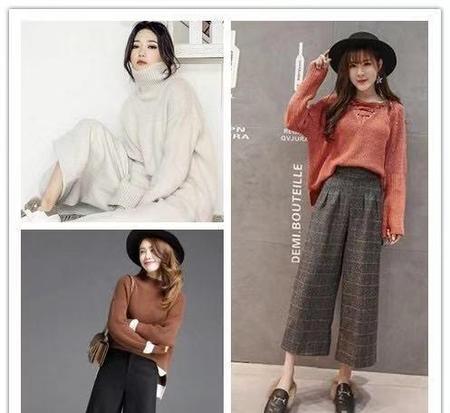 2、针织衫加阔腿裤,阔腿裤是最近两年来流行的元素,宽松的款式更好的隐藏肉肉,黑色的或者格子的又最经典。一件毛呢的阔腿裤也是秋冬毛衣必备的元素,可以将气质发挥到极致。