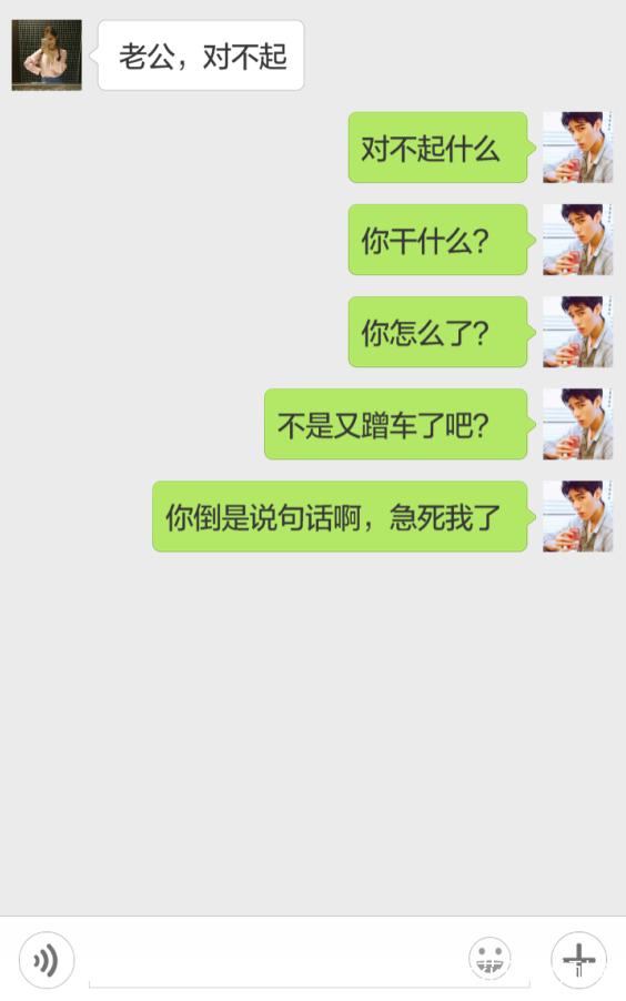 当丈夫收到妻子的道歉时,他也很怀疑。可是看到老婆一直没有回复,他越来越着急。能看出来他怼老婆的关心。然后联想到老婆是不是又撞车了。从老公的语气上来看,他真的越来越担心。