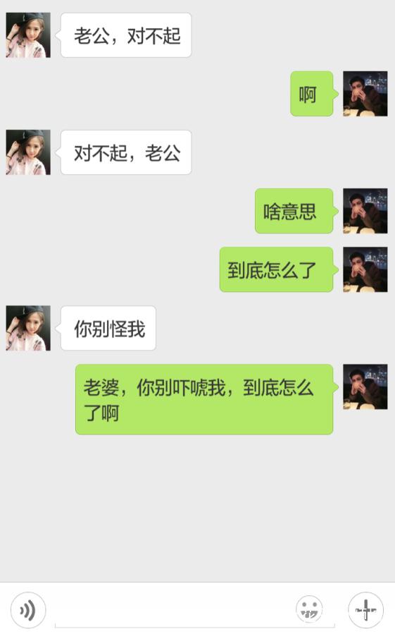 当妻子向丈夫道歉时,丈夫真的很惊慌,立刻想知道她发生了什么事,当他看到妻子发短信说你不要怪我,丈夫变得越来越慌乱,一直关心他的妻子,这样的人真的很爱他的老婆。