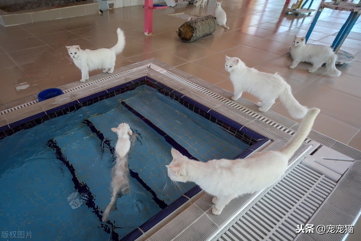 猫当中也有另类,土耳其梵猫,生活在湖边,天生就喜欢水,这大约也可以印证祖先是沙漠猫的绝大多数猫是因为遗传而不喜欢水。而生长在湖边的猫,却喜欢水,不惧怕水吧!
