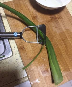 准备一个汤煲放适量的水,待煲里的水煮开后,把芦荟放进去煮5分钟左右,熄火。把芦荟倒出,并用冷水冲洗至冷却。冲洗完后你会发现已经没有滑滑的东西。煲里的芦荟水不能要了哦!