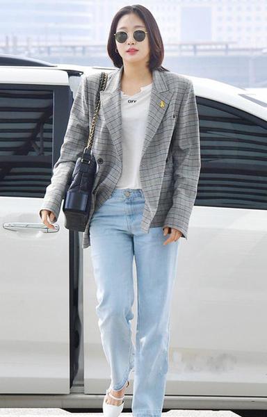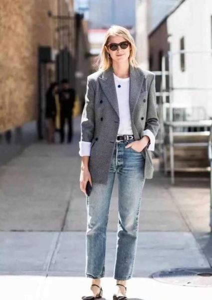 牛仔裤本身的野性和休闲风可以中和西装外套的严肃感,用一件比较宽松的西装外套内搭休闲的T恤,会显得干净清爽,领口处也不会非常复杂,搭配简单的纯色牛仔裤也是比较偏向韩系的风格。简单清新,很多女孩子都喜欢的风格。