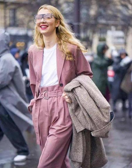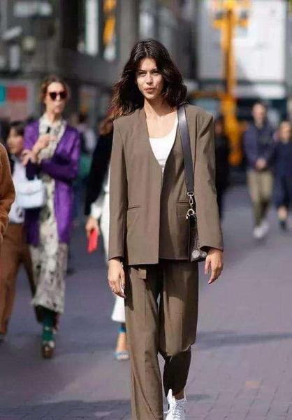 如果喜欢这种比较职业化且很有气场的穿搭,我们就可以选择这种比较有职业感,但是又不会太过严肃的西装套装,外套和阔腿裤穿起来会很显气质。