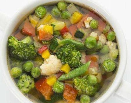 高纤维蔬菜汤,增加饱腹感,补充纤维素及多种营养素,促进排泄。