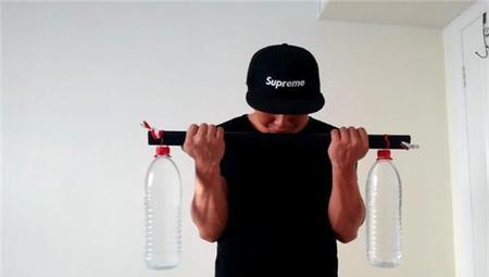 3.简单的,找一根钢管,旁边用两桶水挂着,或矿泉水瓶挂在两头,找个东西把
