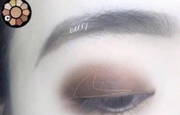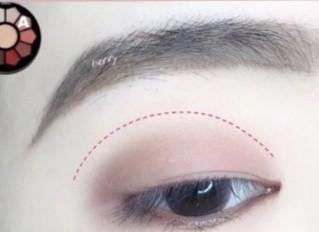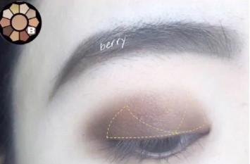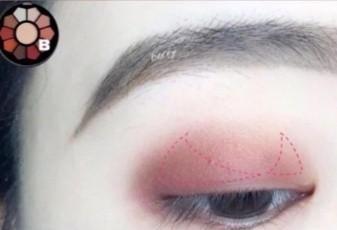 让用哑光红棕色加深一下眼尾和下眼角位置(不要晕染超过眼球)这时候晕染就很重要,要按照图中的位置加深,不要过度晕染不要盖过打底颜色,刷子可以选择小号松散眼影刷和中号眼影刷来刷