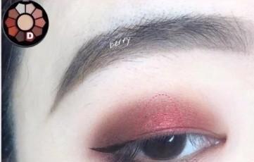 再用珠光酒红色来提亮一下眼皮中央,这样一个红棕色系眼妆就OK了