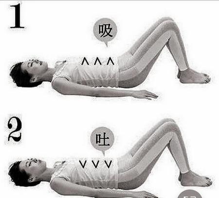 腹式呼吸运动:取仰卧或舒适的冥想坐姿,放松全身。右手放在腹部肚脐处,左手放在胸部,吸气时最大限度的向外扩张腹部,胸部保持不动,呼气时最大限度的向内收缩腹部,胸部保持不动。每次练习15分钟,每天坚持做一到两次,长期坚持能消除腹部脂肪。