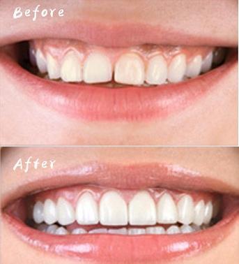 跟树脂贴面类似,只是材料不同。改善牙齿颜色的同时可时牙齿外观更整齐。