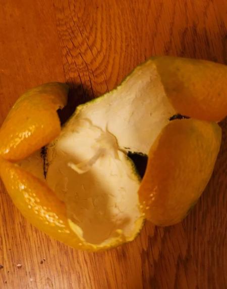 一、将橘子皮折成双层,手指挤捏皮中就会喷射出一股一股清新的橘香喷雾,非常清新。