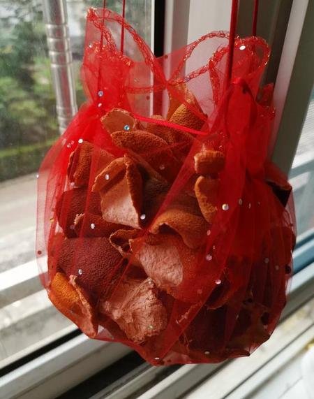二、将吃下的橘子皮收集起来,用纱网兜住,挂在室内或卧室床头附近,有镇静、安神、助睡眠的作用。因为橘子皮中含有大量的天然挥发油成分,清新怡人,有很好的安神作用。