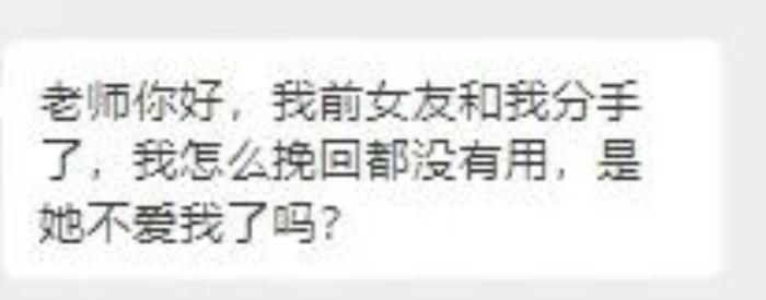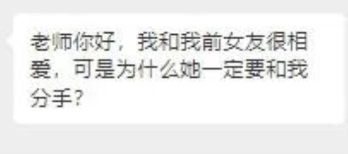 生怕晚了一分钟自己喜欢的人就被别人钻空子捡漏,再也回不来了。这就导致了一个问题,产生这种急切的情绪之后,大多数人都会追着前任死缠烂打。这么做要么让对方心软,和你和好。要么就是彻底拉黑,再也不见。其实方法是没有错的,错的是你使用方法的时间,你不能在人家想要清净的时候狂轰滥炸。所以面对这类粉丝咨询,我做的第一件事,就是让他冷静下来。任何事情只要冷静下来,才能思考出事情的头绪,而不是热血上涌,想一出是一出。
