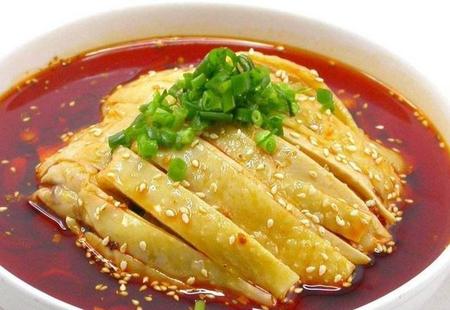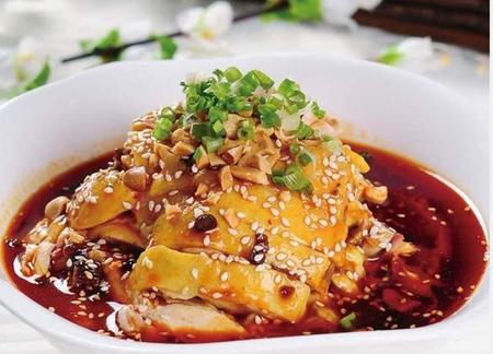 川菜凉菜系的一道特色《口水鸡》,其用料考究,佐料丰富,色香味俱佳,特别突出其麻辣鲜嫩,让人垂涎欲滴,故有美名曰口水鸡