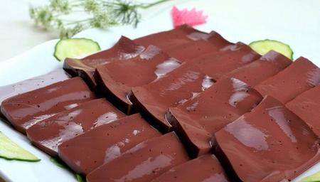 血是含有较多的铁元素,每100g的猪血含3.7g的铁。除了猪血以外,像鸡血每100g含25g的铁,鸭血每100g含30g的铁。