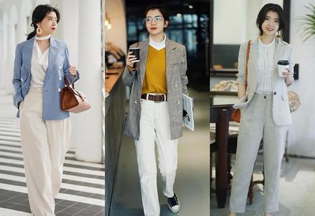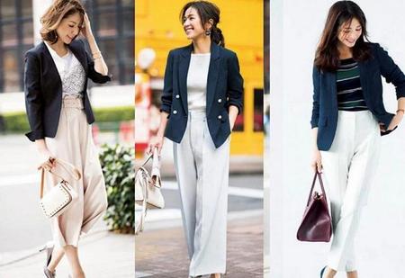 浅色裤子健康高级,还特别适合春夏季节,一件深色小外套,职业摩登