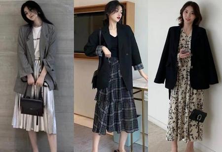 半身格纹裙和碎花裙,以及轻盈灵动的百褶裙,都是何小西装很好的搭配