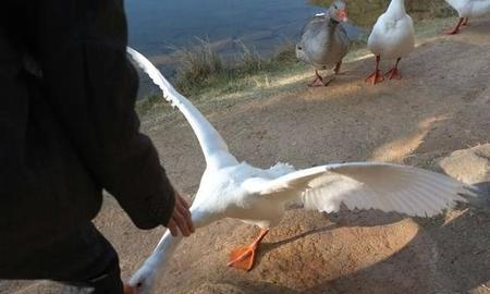 据老一辈人传说,大鹅和鸡鸭等这些家禽不一样,鹅生性凶猛,并且鹅的攻击性还很强,你如果在农村生活过,你肯定被村里的大鹅追赶过,村里很多动物都不是它的对手,有时候就连狗都打不过它们。