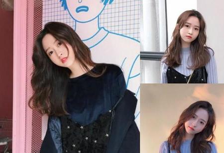 很喜欢这种颜色,黑茶色,2018年很流行的发色之一,而且很显肤色哟,中长的烫发,发丝进行了自然微卷,随意散落在肩上,有种无法忽略的慵懒美感,配上空气刘海,更是甜美动人。