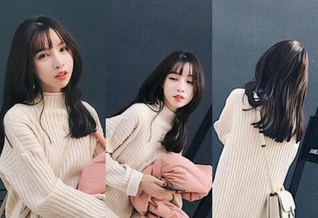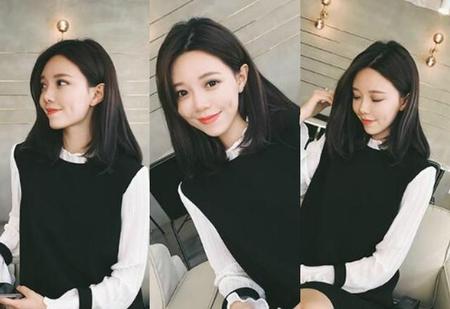 2018年锁骨发很流行哟,喜欢这种长度发型的菇凉们一定要换上,显脸小的蓬松感锁骨烫发,比较接近黑色的发色,把肌肤衬托得很白皙,依然是搭配上轻薄空气刘海,真是甜美感十足。