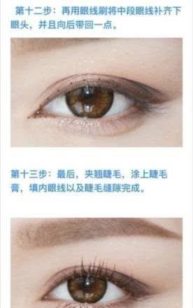 左后做一个开眼角一样可以拉长眼睛 ,而且能够缩短眼睛之间的距离哦,不过这个要根据自己的眼间距来决定的,最后画好睫毛就OK了。看着是不是觉得好复杂,其实化两次熟练了就 没什么 了,只是讲解的时候一步一步的看着比较复杂。这个眼妆的妆感是外出,拍照,聚会都可以,搭配整个妆容,妆感会淡很多,但是细看很精致。